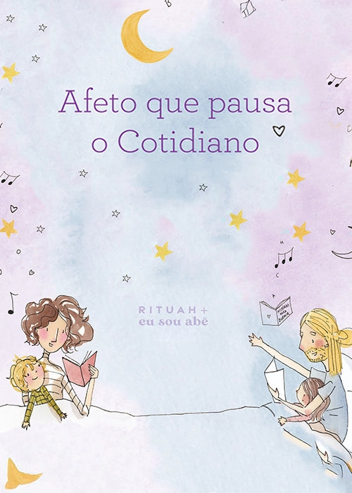 No verso da arte exclusiva da Eusouabê, um guia prático com sugestões para criar o seu ritual noturno em família.