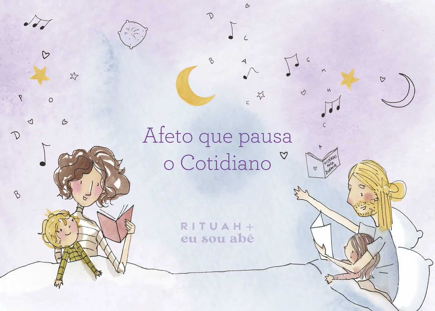 No verso da arte exclusiva da Eusouabê, um guia prático com sugestões para criar o seu ritual noturno em família.