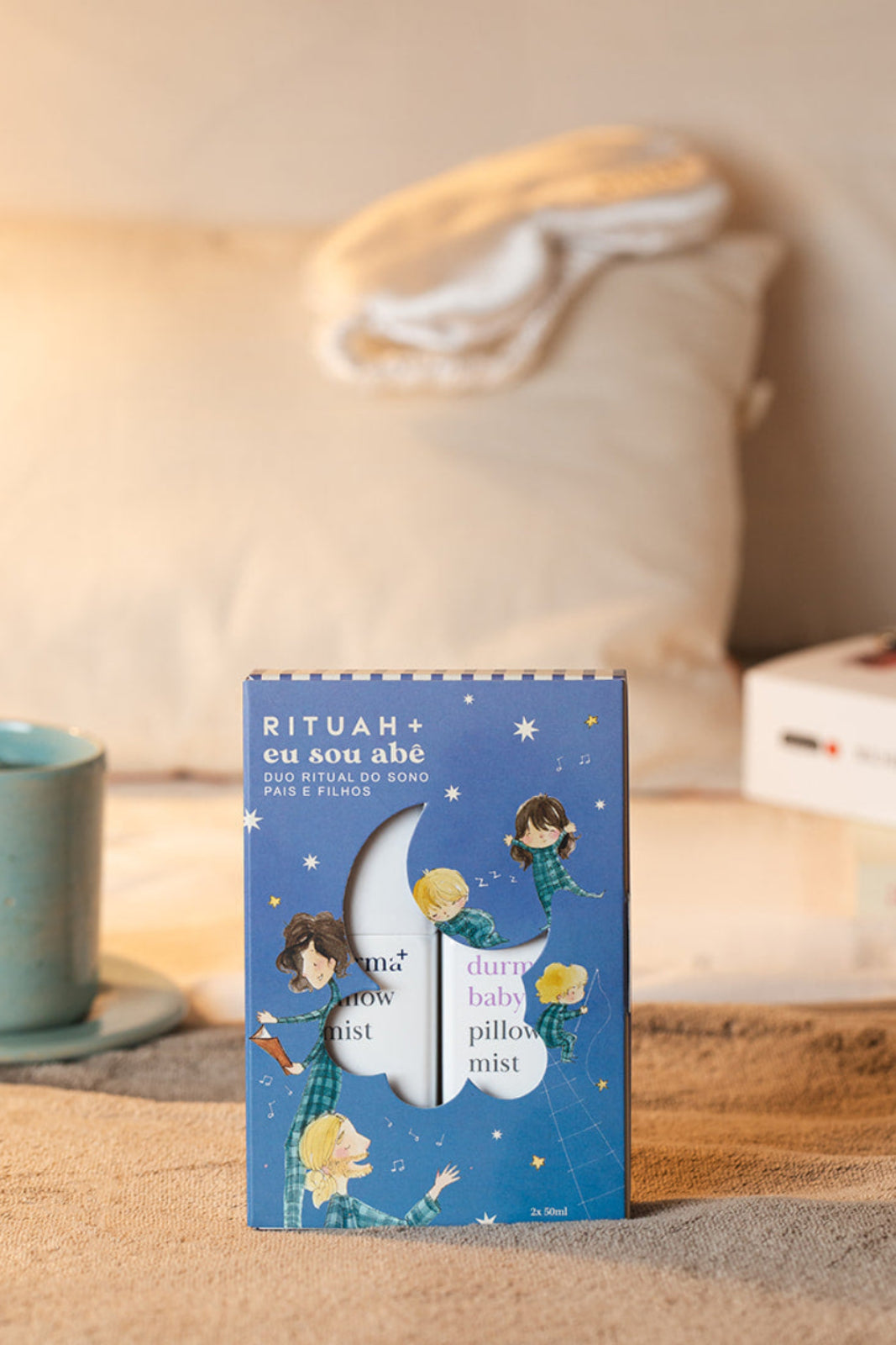 Mais do que um produto, uma experiência sensorial. Unimos a aromaterapia sofisticada da Rituah com a narrativa afetiva da Eusouabê para criar o cenário perfeito para histórias, abraços e sonos tranquilos.